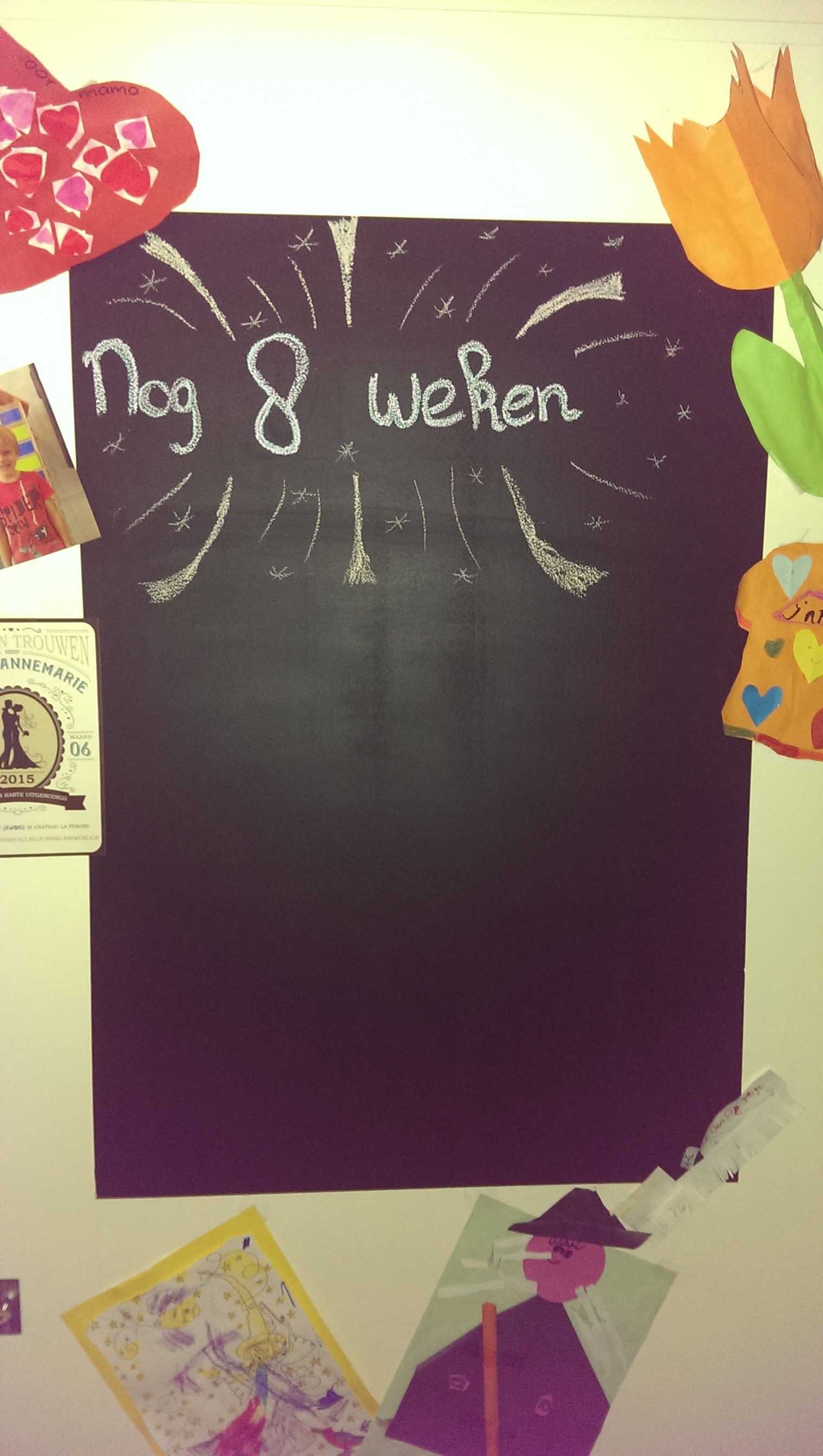 Het is nu zondag 21.23 uur en het notitiebord achter mij schreeuwt: “Nog 8 weken!”